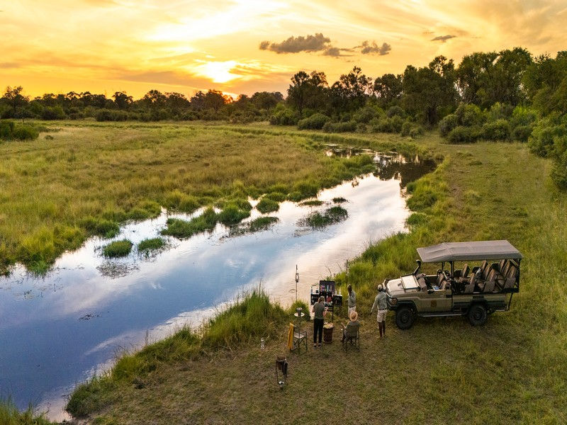 Set in the game rich Khwai Concession of Botswana’s Okavango Delta, Machaba Camp offers an eco luxury safari experience that blends 1950s charm with modern comfort. Overlooking the Khwai River and bordering the famed Moremi Game Reserve, this intimate camp is nestled under a canopy of riverine trees, perfectly positioned for both privacy and panoramic wildlife views.