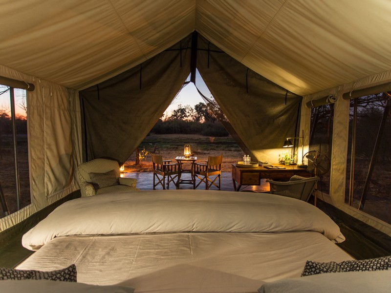Named after the Sycamore Fig Tree, the “tree of life” in Setswana, Machaba Camp captures the spirit of a true African safari. Its ten luxury tents, including two family units, feature en suite bathrooms, outdoor showers, and timeless furnishings. All tents are connected by sandy pathways that wind beneath ancient trees. The camp is family friendly, wheelchair accessible, and welcomes guests of all ages.